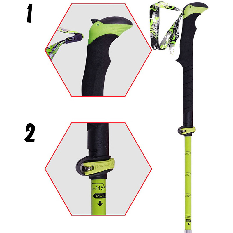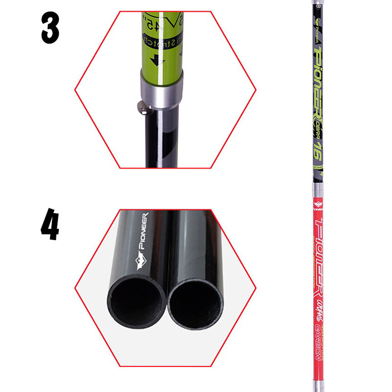 Vandring Carbon Trekking Poles axel använder 80% kolfiber (3 kolfiberavsnitt), lätt, god elasticitet och seghet, hög hållfasthet, korrosionsbeständighet och så vidare.